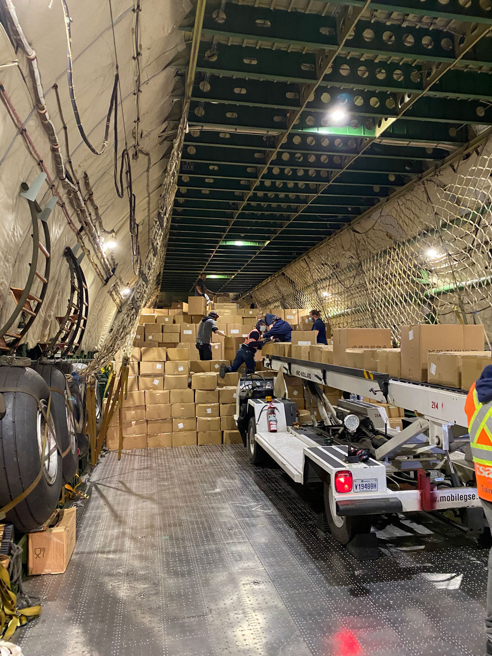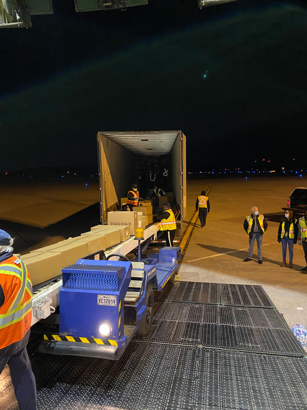The Quebec Government’s 300+ tons of PPE landed smoothly in Quebec on Friday evening. Teams worked through the night to get the aircraft offloaded and the long awaited supplies on their way.